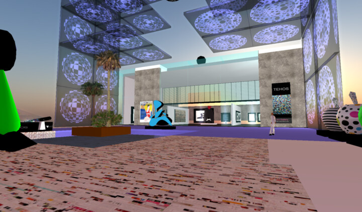 Between 2008 and 2013, Tehos took part in numerous international virtual exhibitions, including Through the Virtual Looking Glass (organised by the Pirats association in partnership with several universities in Boston, the Netherlands, and Australia), and Arkaos, a collaborative project bringing together multiple artists around a dreamlike, interactive architectural structure.