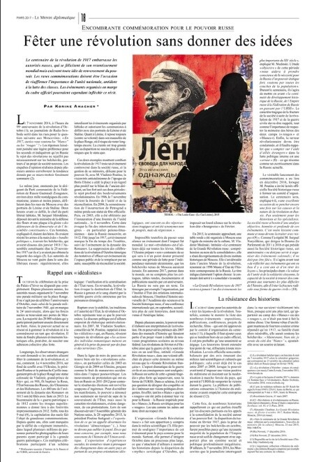 - 2017 - Centenaire de la revolution russe, article de Korine Amacher ( Tableau Tehos )